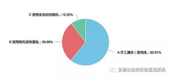 實驗室玻璃器皿清洗方式問題,有關部門曾做過一個調查。調查表明:有超過30%的實驗室每天要清洗100個以上的玻璃器皿,已有10.3%的實驗室選擇了使用全自動洗瓶機來代替繁重的人工清洗。我們先來看看這個調查。