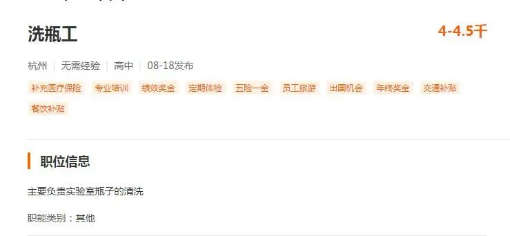 從國內(nèi)熱門招聘網(wǎng)站信息可見,一些洗瓶工人的工資和福利非常豐厚。有企業(yè)開出6K-11K月薪+14薪+【五險一金、補充醫(yī)療、定期體檢、年終獎、股票期權(quán)、帶薪年假、員工旅游、免費班車、包吃、節(jié)假日福利、包吃包住、節(jié)日禮金】。但重金聘來的洗瓶工,卻讓管理者一言難盡。